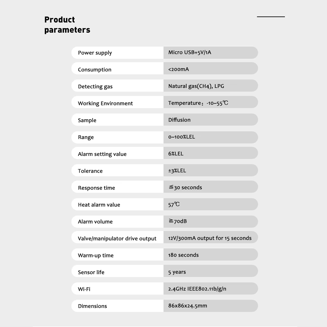 Made from strong materials, the device runs on AC 100–240V and works well indoors between 0°C and 40°C, with humidity up to 90%. It uses little power and reacts fast, giving you peace of mind.