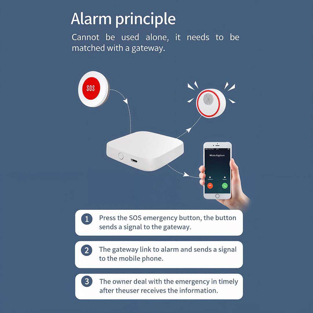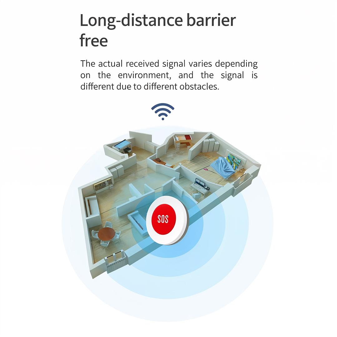 The button is made for simple use. Just press it to send an alert. It runs on a small battery that lasts up to a year. When installing, you can use adhesive or screw it to the wall. It’s perfect for seniors, home safety, or medical needs.