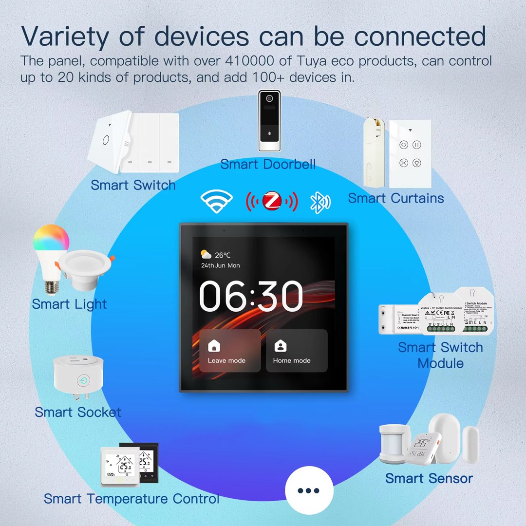 • Wi-Fi & Zigbee Connectivity: Supports both Wi-Fi and Zigbee for seamless integration with smart home devices.