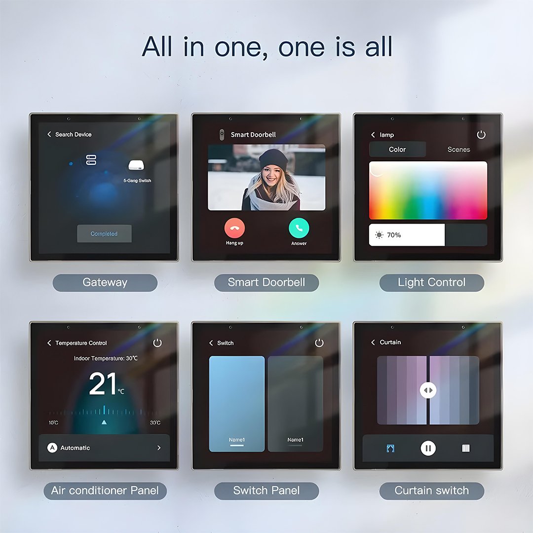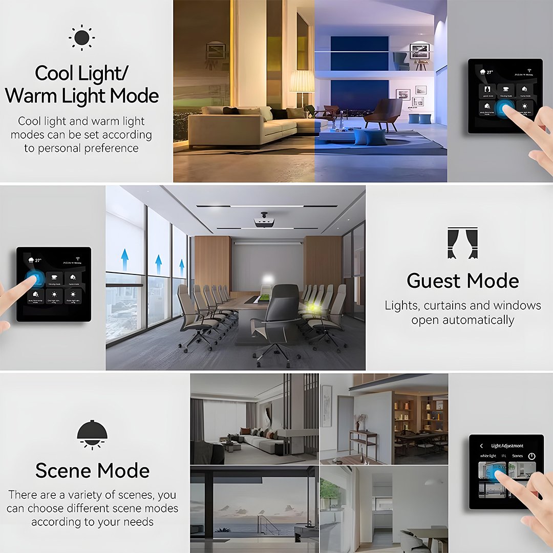 This panel makes smart control easy. From one screen, you can turn devices on or off, control lights, fans, or appliances, and even run multiple actions with just a single tap. It supports up to four controls or “buttons” on one screen. You can customize them to match your home setup.