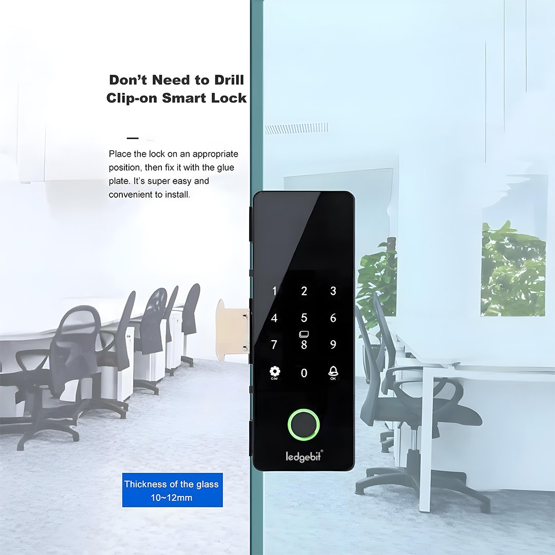 The Ledgebit Smart Glass Door Lock is a modern and secure solution for frameless glass doors. It offers several ways to unlock: fingerprint, mobile app, NFC card, PIN code, and Bluetooth (BLE). Whether you’re upgrading your home or office, this lock gives you smart, flexible control.