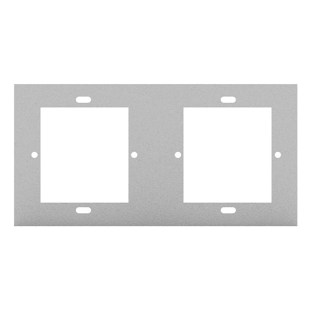 - 2-gang configuration holds two devices in a side-by-side layout