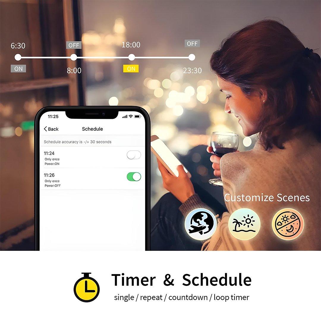 - Set Schedule & Timer: Automate your device’s on/off times to save energy and reduce electricity costs.