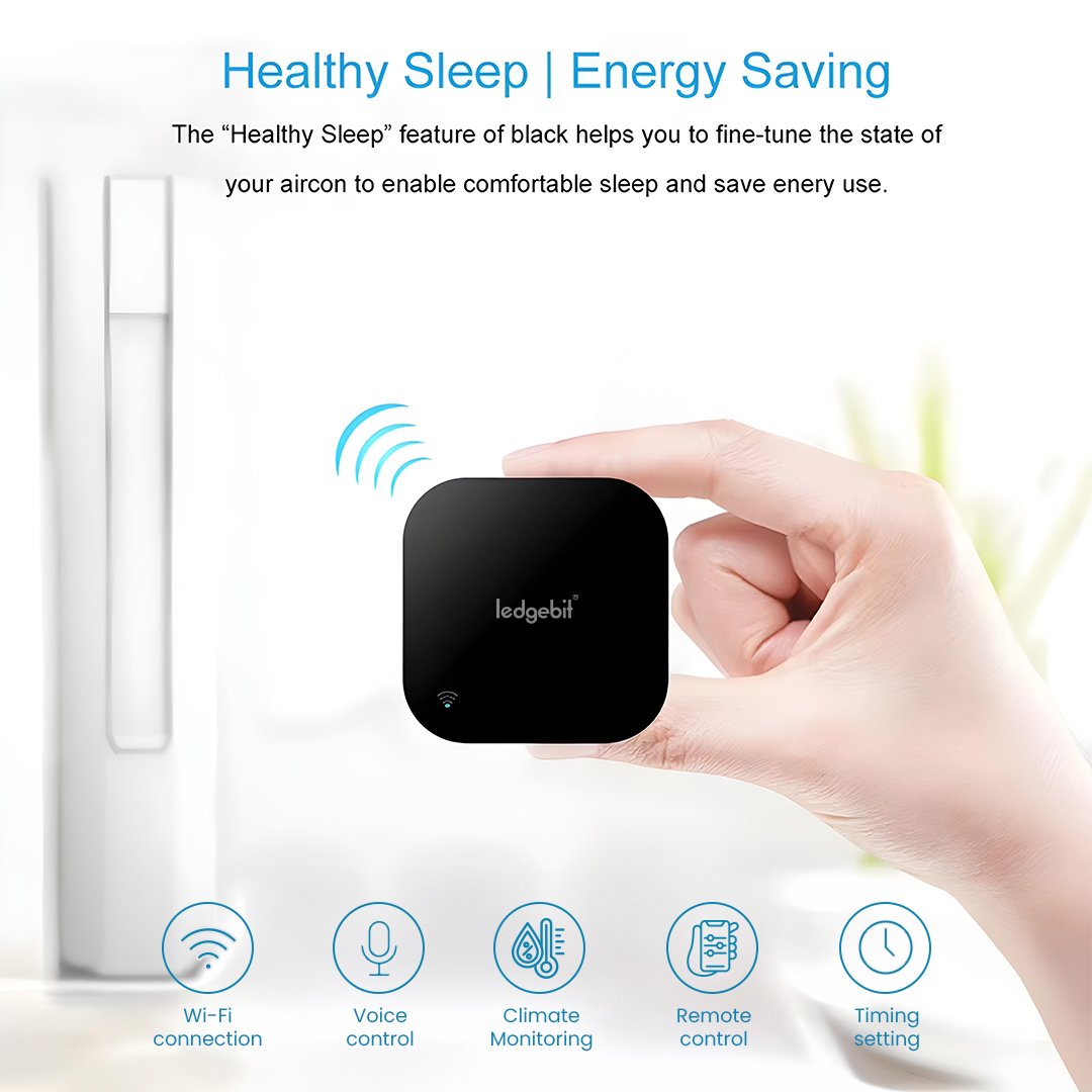 The Ledgebit Wi-Fi IR Air Conditioner Controller is designed to provide seamless control over your air conditioning system, allowing you to manage it from anywhere using your smartphone or voice commands. Key features include: