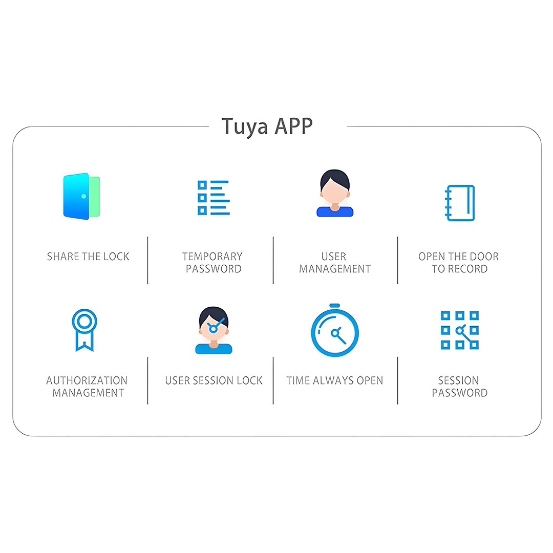 With five unlocking methods – fingerprint, password, RFID card, Tuya/Smart Life mobile app and mechanical key – it ensures flexibility and convenience for every user. The smart lock is managed through the Tuya/Smart Life platform, allowing you to manage access remotely and track door activity in real time.