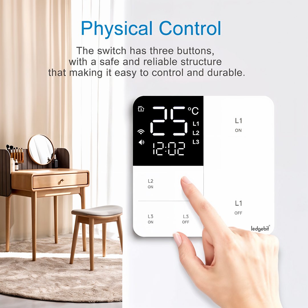 The Ledgebit Smart Touch Light Switch is a stylish and practical upgrade for any smart home. It combines Wi-Fi connectivity, a built-in timer, and a temperature display, all wrapped in a sleek touch panel. Best of all, it works without extra hubs—just connect to your Wi-Fi network and control it via the Smart Life or Tuya App.