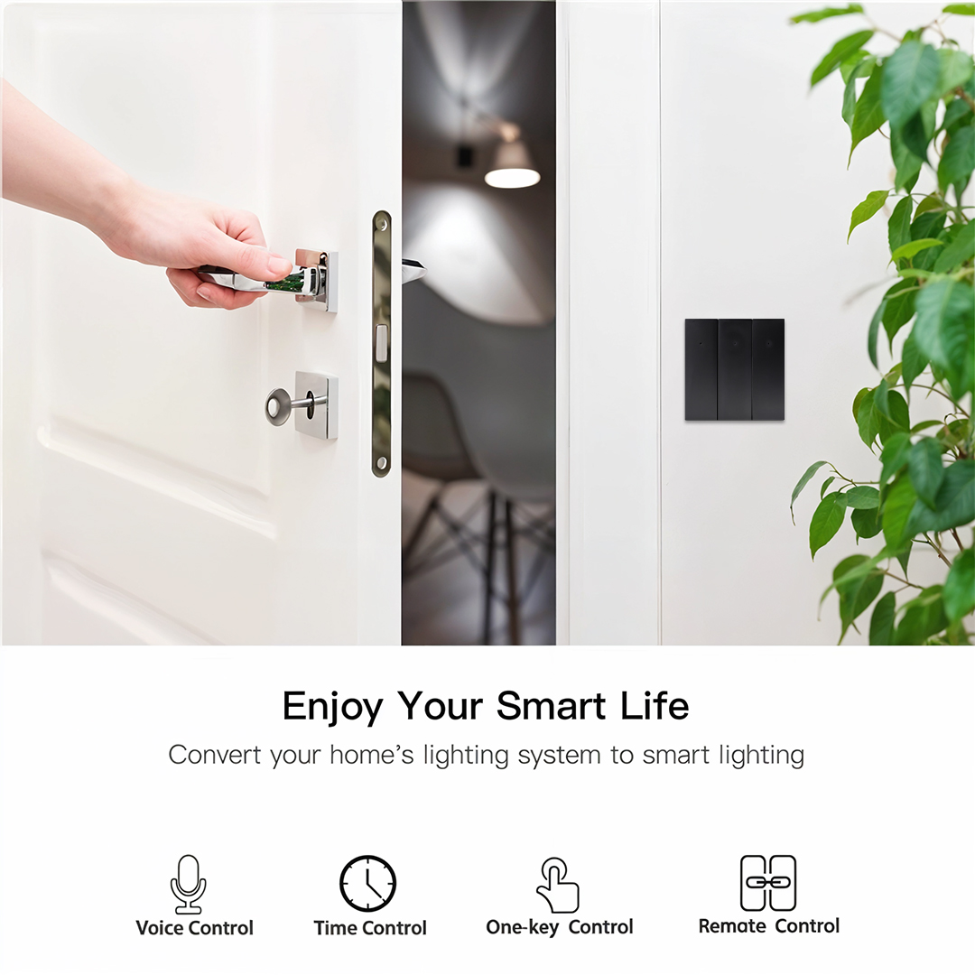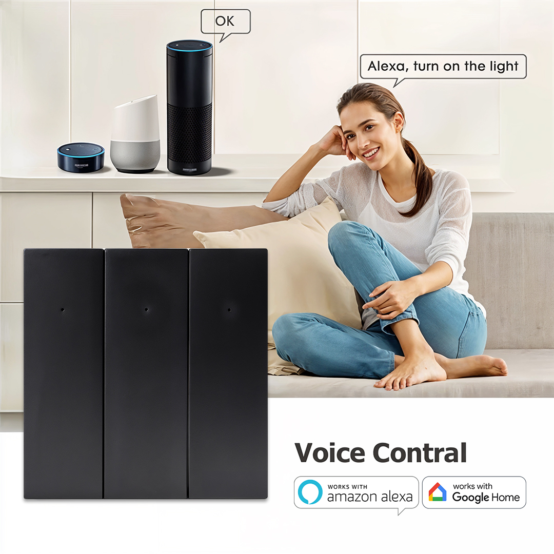 Compatible with major voice assistants such as Amazon Alexa and Google Assistant, the switch supports hands-free operation for enhanced convenience. Constructed with fire-resistant materials and designed for standard wall box installation, it requires a neutral wire and accommodates a wide voltage range for global applicability. The device emphasizes energy efficiency, safety features like overload protection, and customizable automation scenes, making it suitable for modern smart home upgrades where aesthetic refinement and functional reliability are prioritized.
