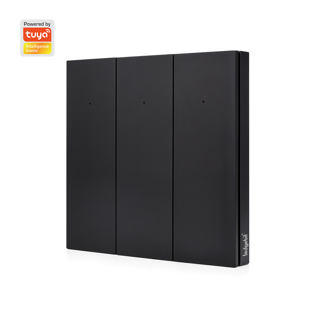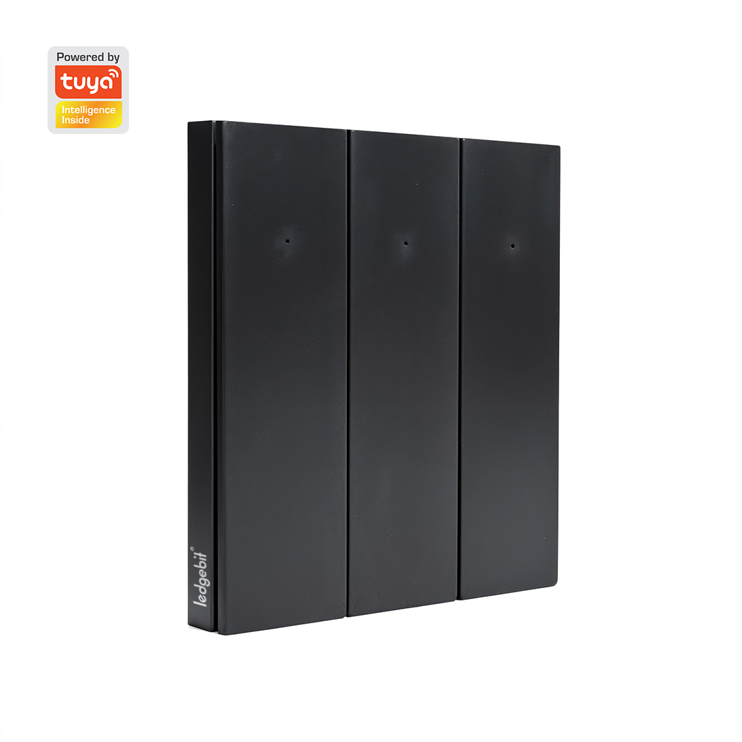 The Ledgebit Wi-Fi Smart Wall Light Switch (3 Gang) provides an advanced and elegant solution for controlling multiple lighting circuits in residential or commercial environments. Featuring a premium ABS Plastic touch panel with capacitive sensitivity, this three-gang switch enables independent operation of up to three separate lights or appliances from a single, streamlined unit. Its direct WiFi connectivity ensures hub-free integration into the Smart Life ecosystem, facilitating remote control, scheduling, and monitoring through the Tuya Smart Life application.