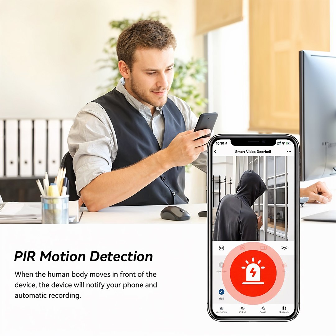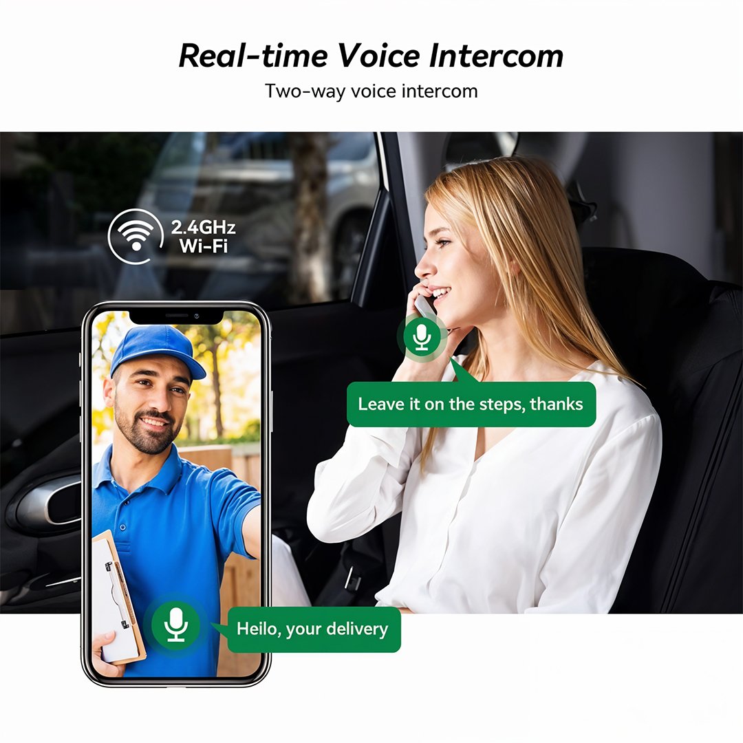 - Two-Way Audio: Built-in mic and speaker for real-time visitor communication.