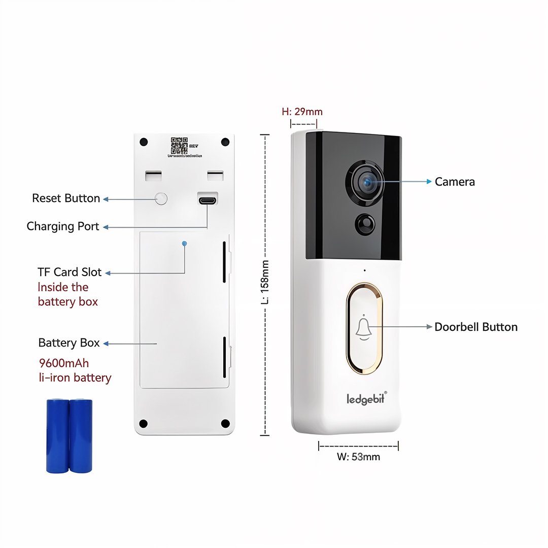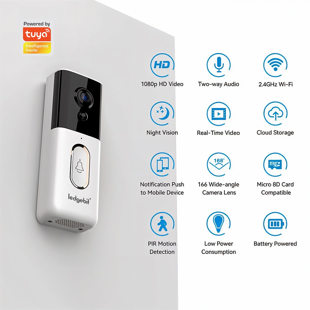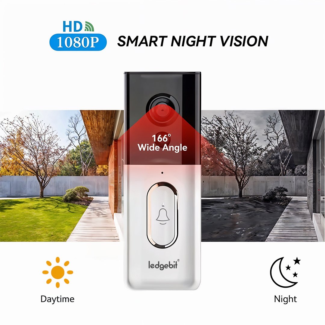 Ledgebit 1080P WiFi Video Doorbell – Smart Camera with Chime & IP65 Waterproof