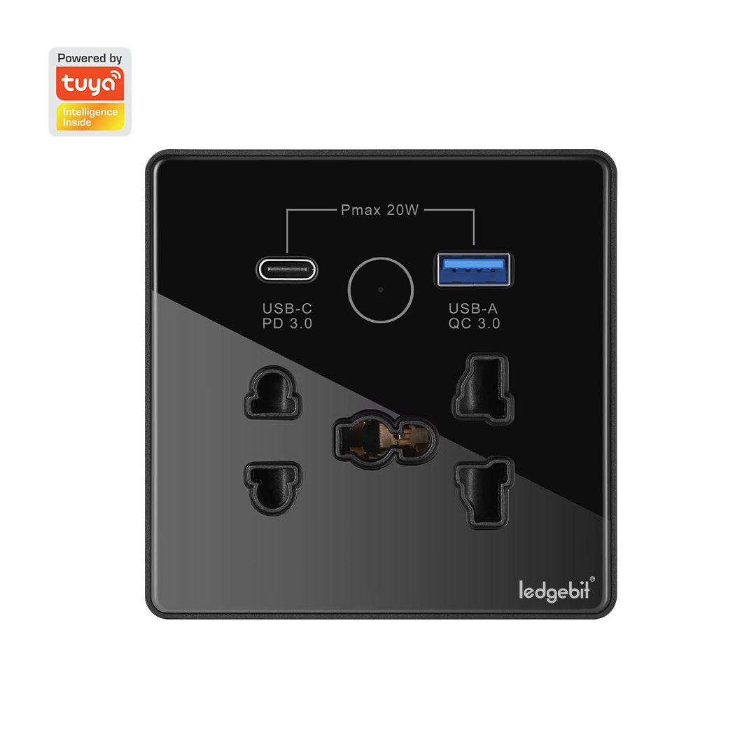 Ledgebit Smart Wi-Fi Wall Socket – 13A Outlet with USB-C & USB-A (Black)