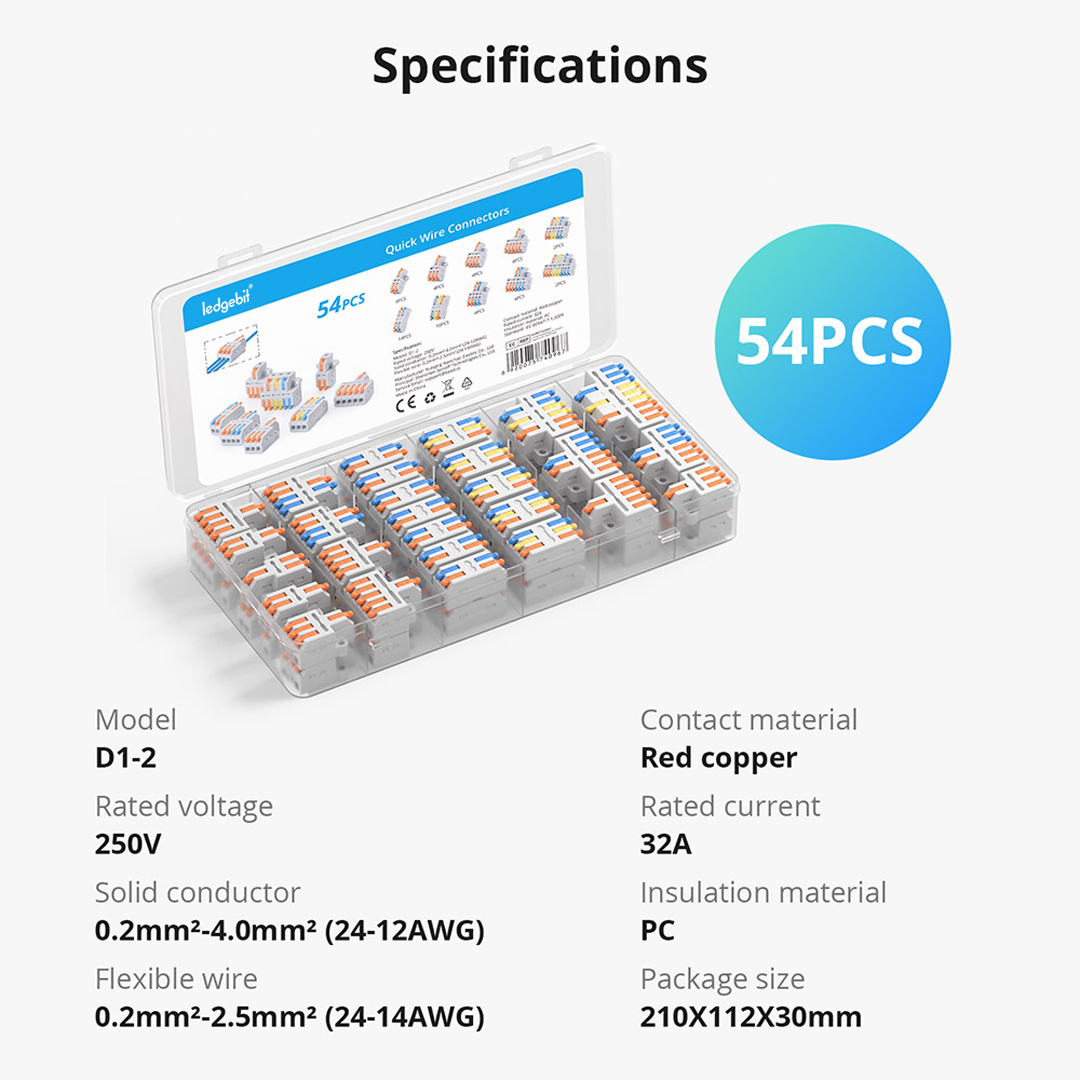 The Ledgebit D1-2 Quick Wire Connectors is a compact, fast, and tool-free solution designed for smart home installations. If you need to splice two wires securely, this connector gets the job done in seconds. You simply strip your copper wire, push it in, and the connector grips tightly. There’s no need for twisting or using a screwdriver.
