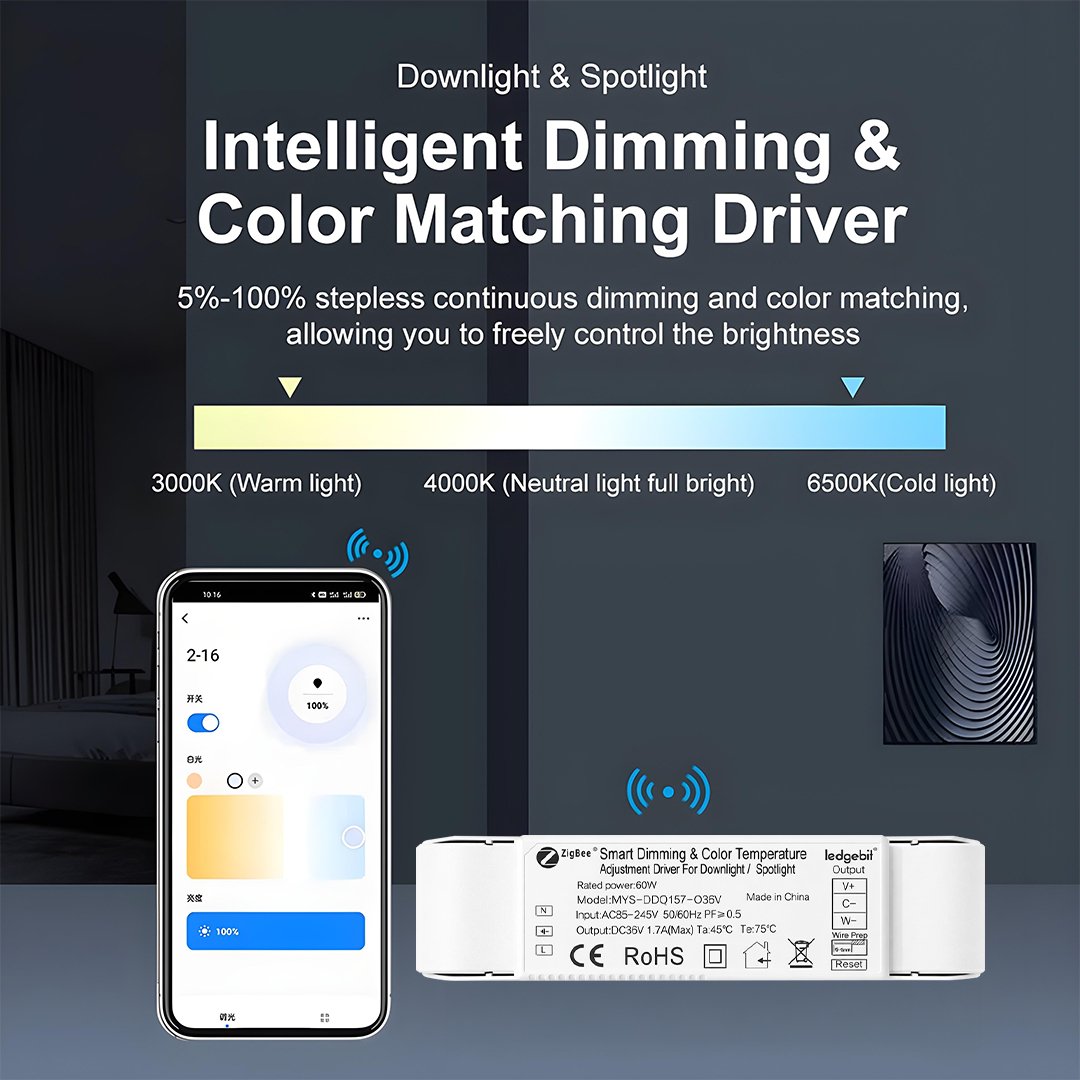 The Ledgebit Zigbee Smart Dimmer Driver is a compact, high-performance Zigbee light dimming driver designed specifically for downlights and modern LED lighting systems.