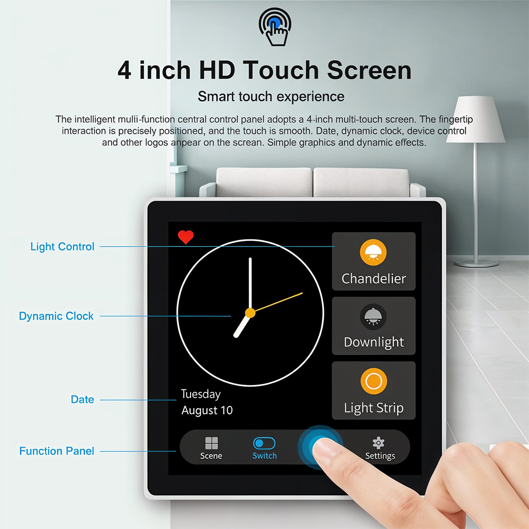 The switch enhances everyday convenience by offering remote control, on/off scheduling, scene control, voice assistant compatibility, and effortless control through its responsive touch panel. It is ideal for residential apartments, villas, offices, hotels, or any space where smart lighting control is desired.
