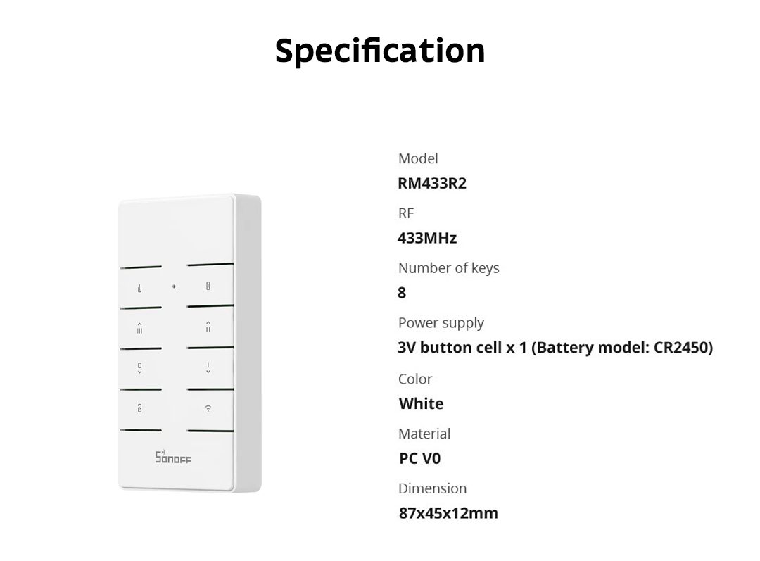 SONOFF RM433R2 Remote Controller