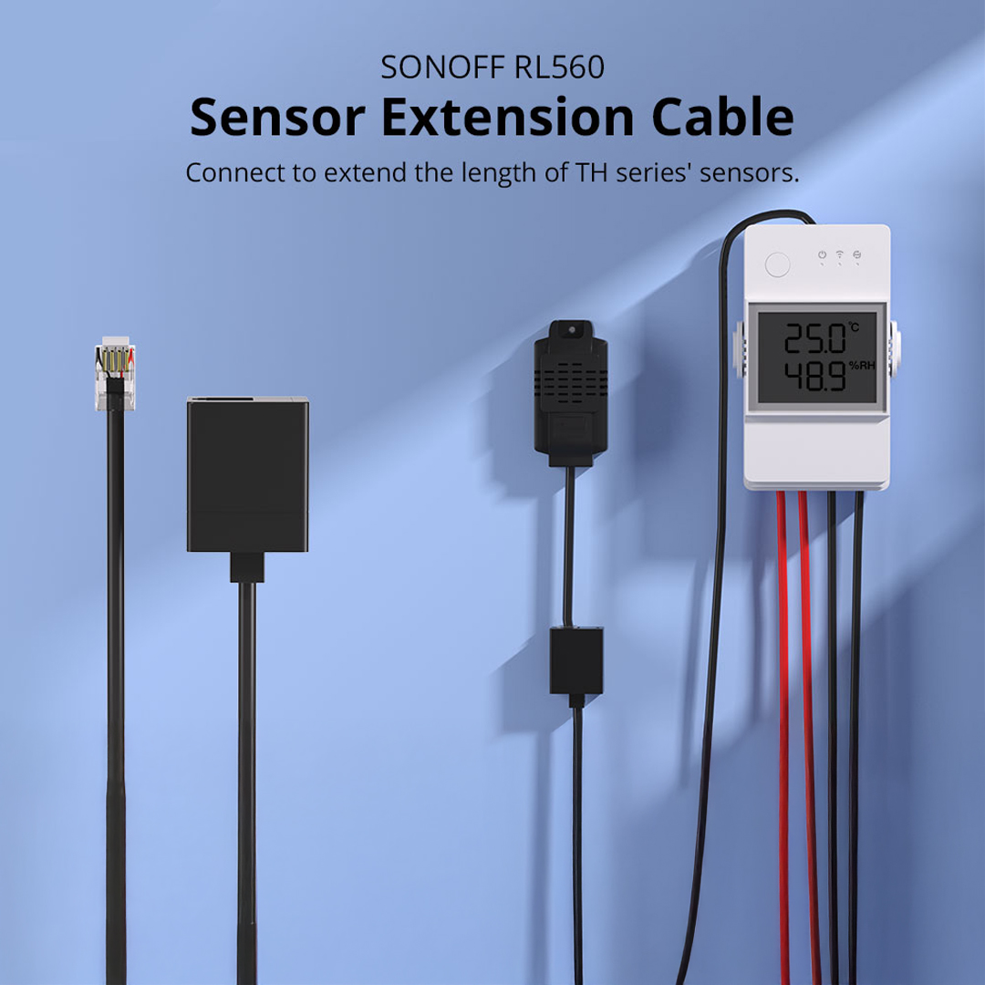The Sonoff RL560 Sensor Extension Cable helps you place sensors farther from your smart controller while keeping strong signal quality. With a 5-meter RJ9 (4P4C) design, it gives you flexibility in homes, greenhouses, server rooms, and more.