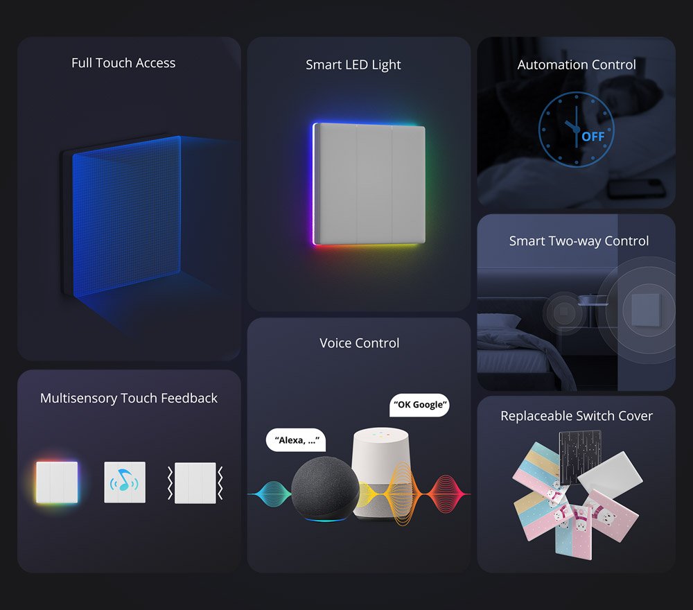 This switch is great for bedrooms, living rooms, offices, or any space where you want both smart features and a modern look.