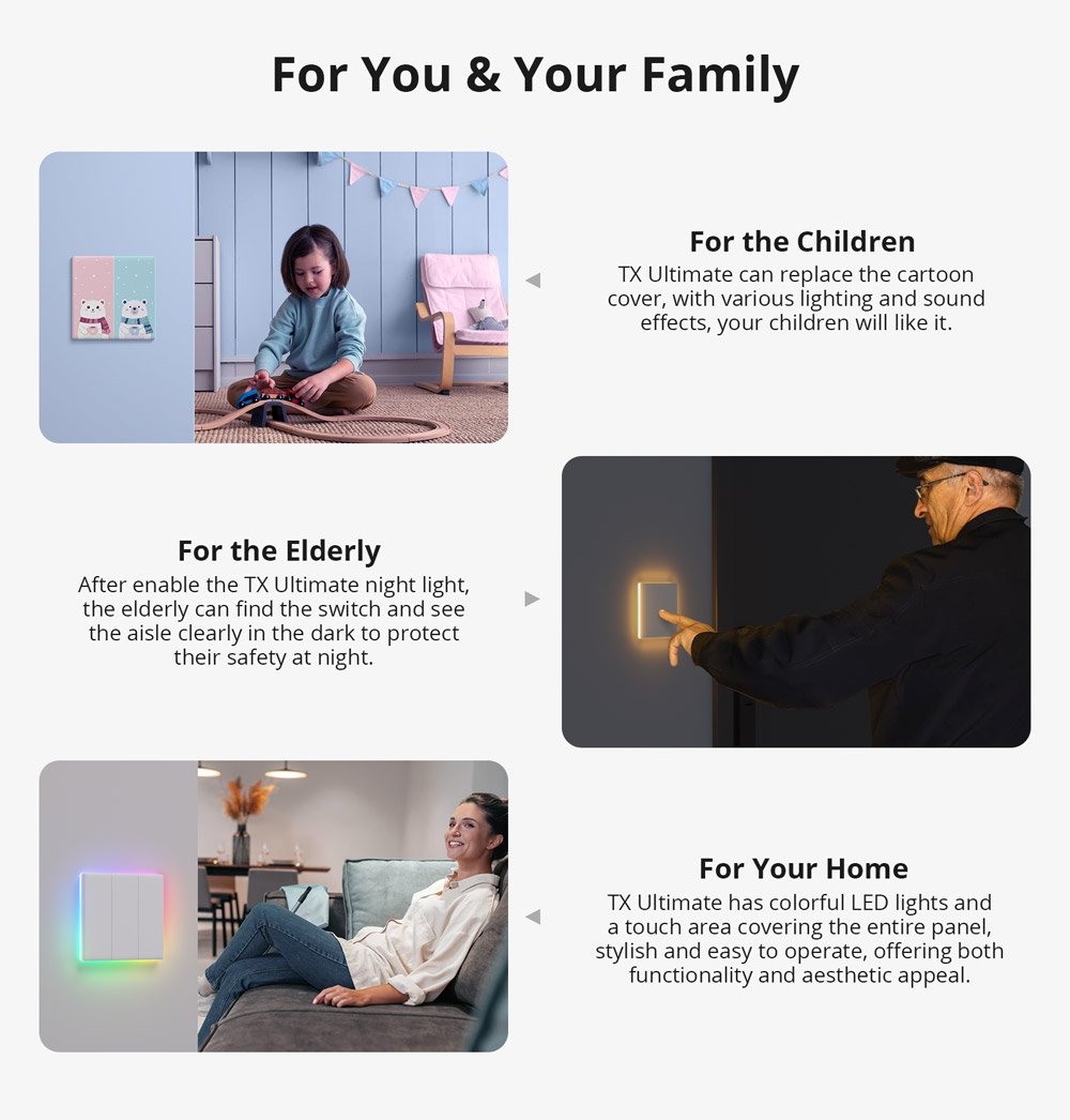 _Full Touch Access_Compared to a regular touch switch, TX Ultimate has a much larger touchable area, almost occupying the entire panel. Easy to turn on/off with a light press.