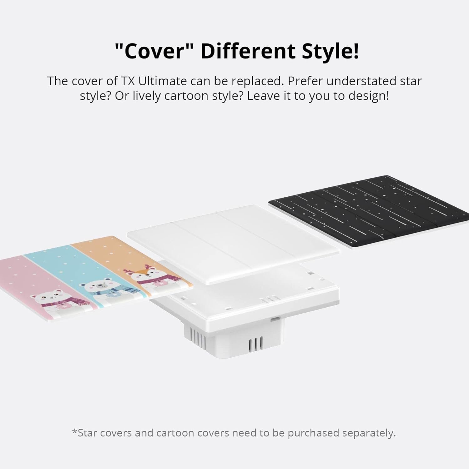 _Replaceable Switch Cover_The cover of TX Ultimate can be replaced. A star style and cartoon style are available. You can consider whether to purchase other panels according to different decoration styles.