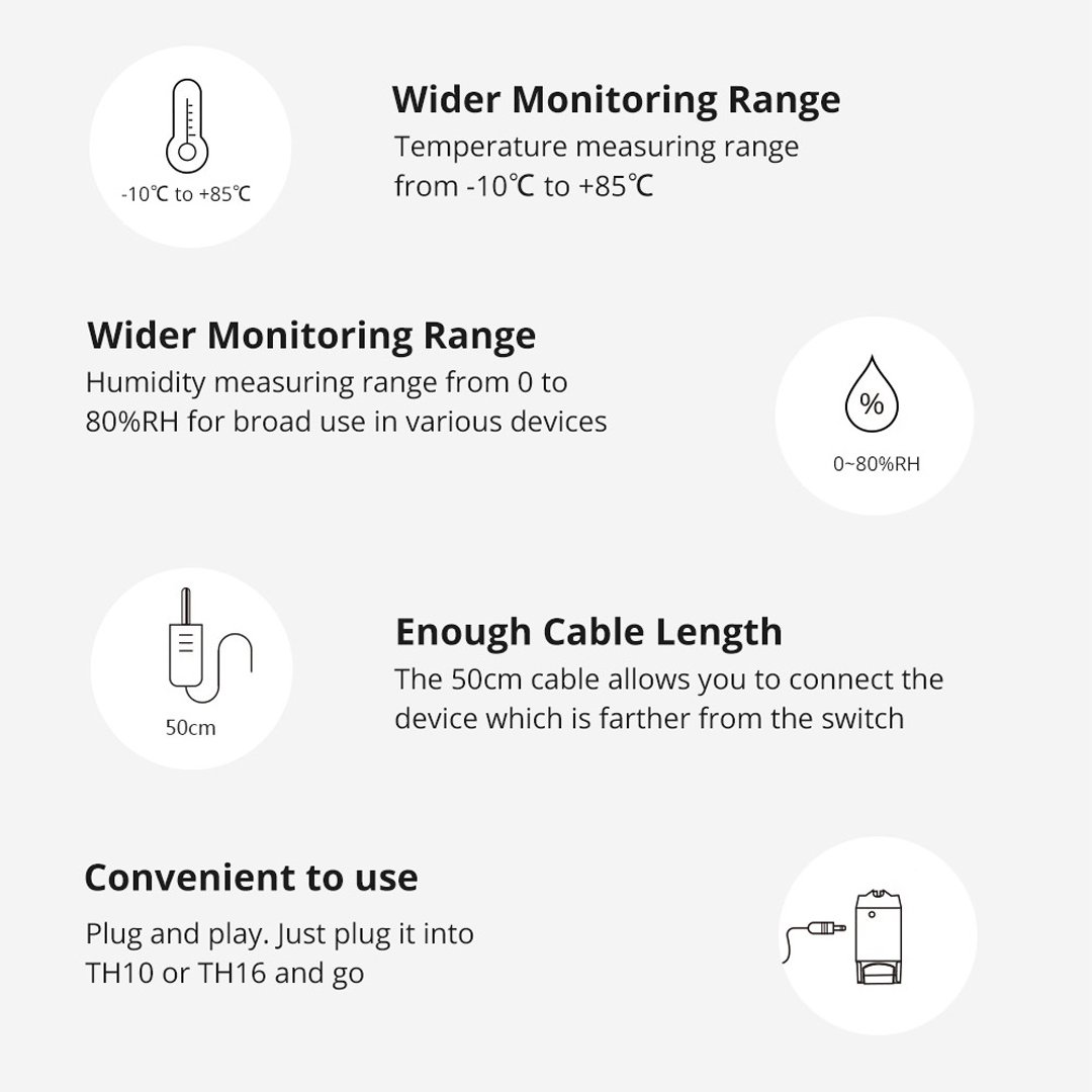 The Sonoff SI7021 is a smart temperature and humidity sensor that provides fast, accurate readings. It connects to the Sonoff TH10 or TH16 switches to help automate your home based on climate conditions.