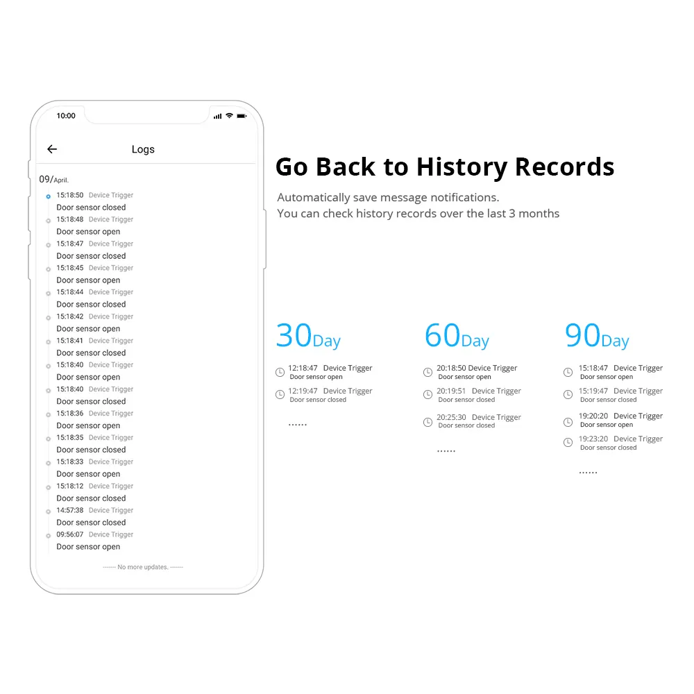- History Record: View the sensor’s history of open/close events through the app for better tracking.