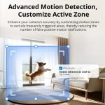With AI human detection, the camera can differentiate people from irrelevant movement (like pets, leaves, or shadows), reducing false alerts and sending smarter notifications. You can define custom alert zones to focus surveillance where it matters most, and also adjust sensitivity settings to fine-tune responsiveness. For moments when you need privacy, a Sleep Mode can turn off video monitoring entirely, and Custom Privacy Zones allow you to mask parts of the view that you prefer not to be recorded.
