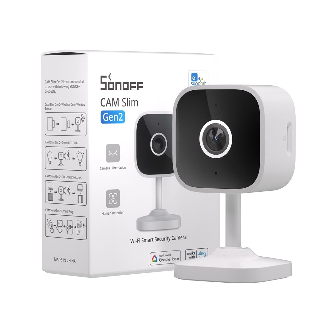 The SONOFF CAM Slim Gen2 (model CAM-S2) is a compact and intelligent indoor Wi-Fi security camera designed to deliver reliable performance, privacy control, and smart features in a sleek form factor. It streams crisp 1080p Full HD video for real-time monitoring or recording, helping you catch important details like faces or motion events. Unlike many simple cameras, the Gen2 version brings enhancements in privacy protection and detection intelligence, making it more suitable for modern connected homes.