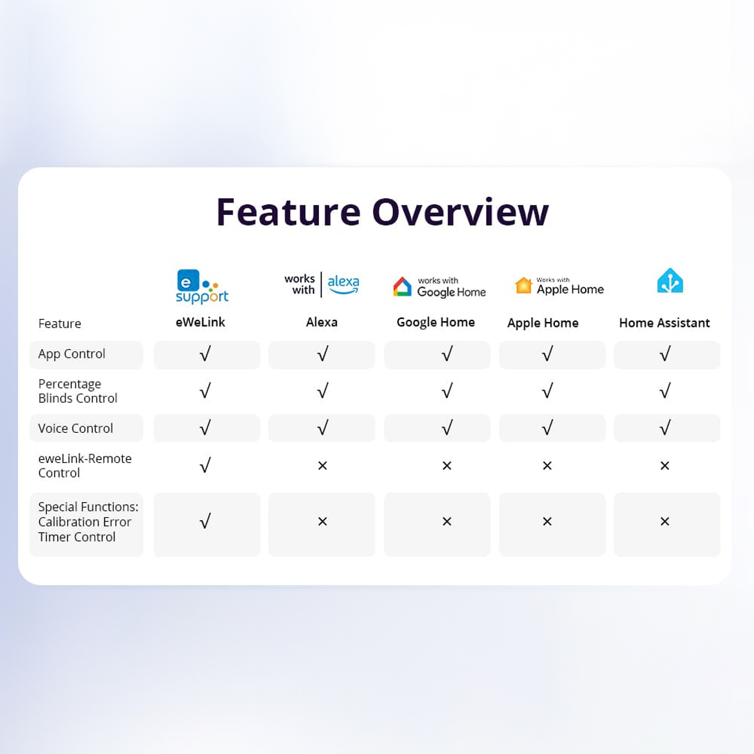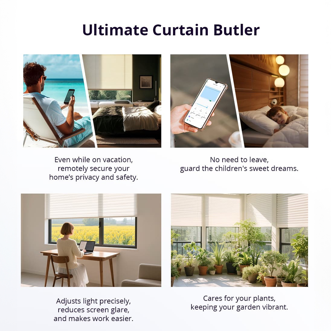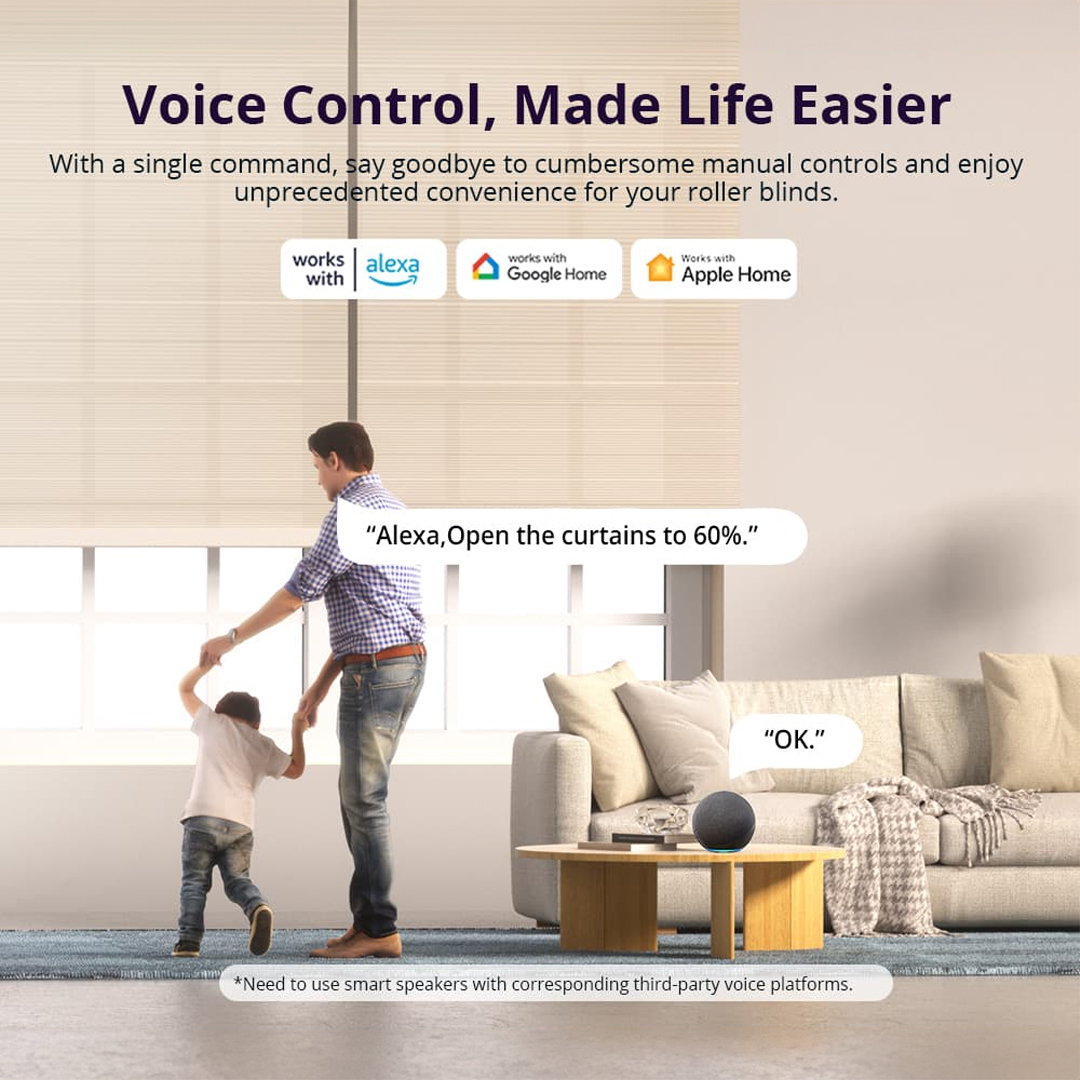 - Voice and app control – Operate your shades hands-free via voice assistants or remotely through the companion app.