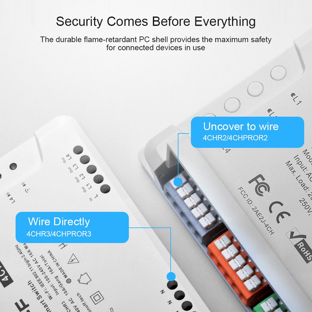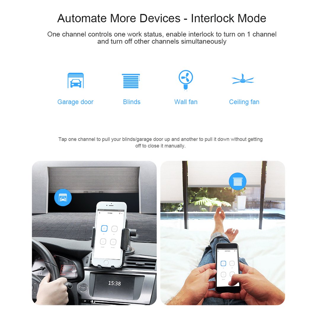 With support for 4 independent channels, you can control each device separately through the Smart Life or eWeLink app. Set timers, create schedules, and automate scenes easily from your phone. The switch connects to your 2.4GHz Wi‑Fi network and doesn’t need any extra hub.
