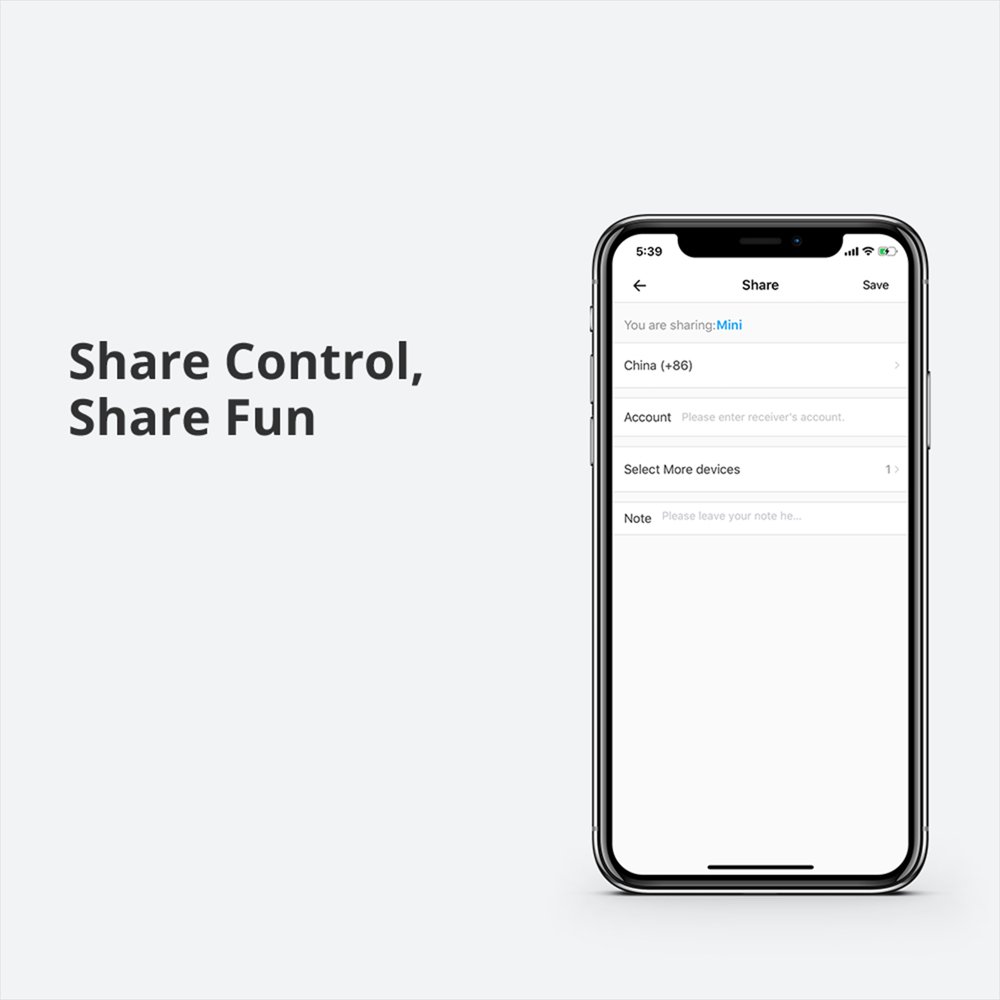 You can share control with other users through the app, making it easy for family or team members to manage. It supports live and neutral wire connections and integrates smoothly into the wider eWeLink system for smart automation with other devices.