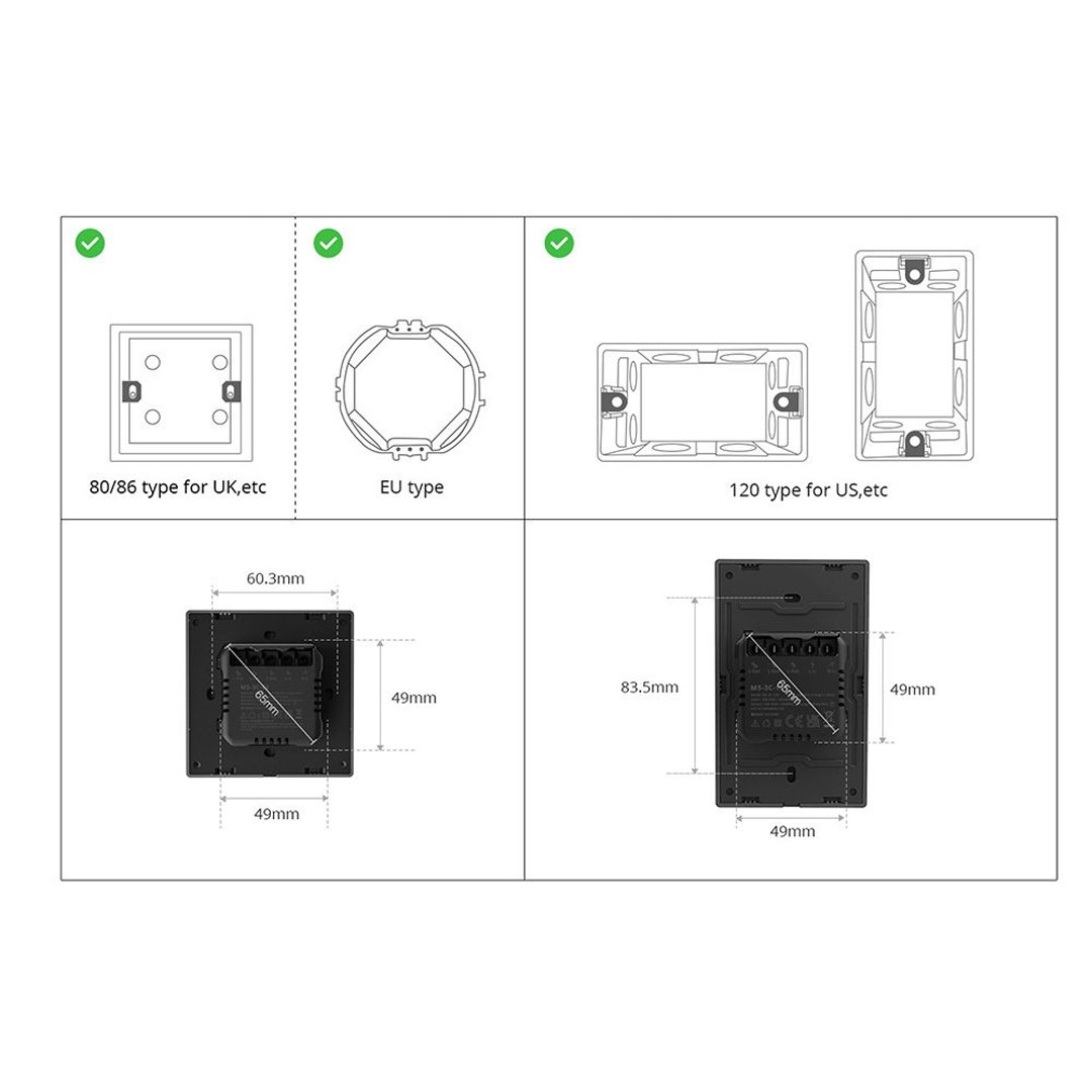 SONOFF M5-3C-120 SwitchMan Smart Wall Switch 120 Push Button Switch 3 Gang Switch Work With Alexa Google Home and other