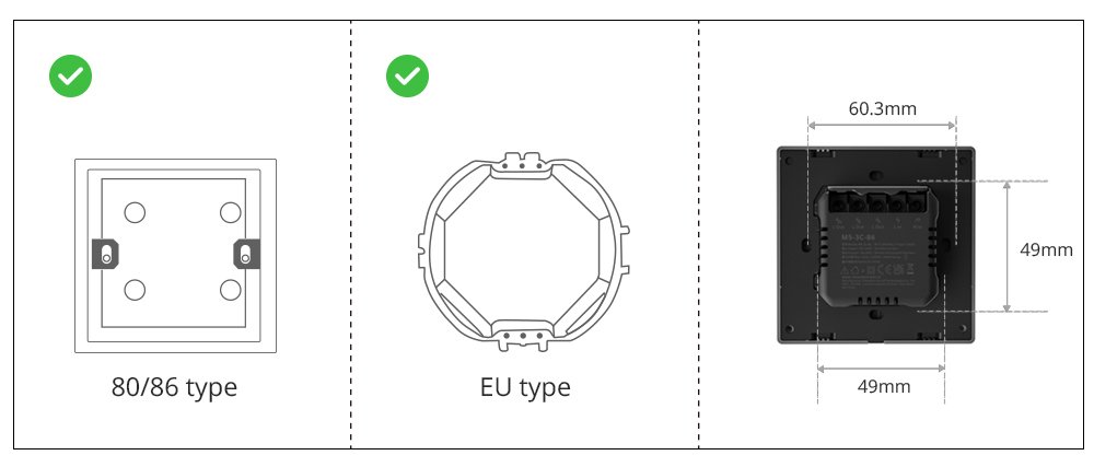 Installation is simple. It fits into a standard 86-type wall box and supports both live and neutral wiring. Once connected to Wi‑Fi, you can easily pair it with your preferred smart home app and begin controlling devices from your phone.
