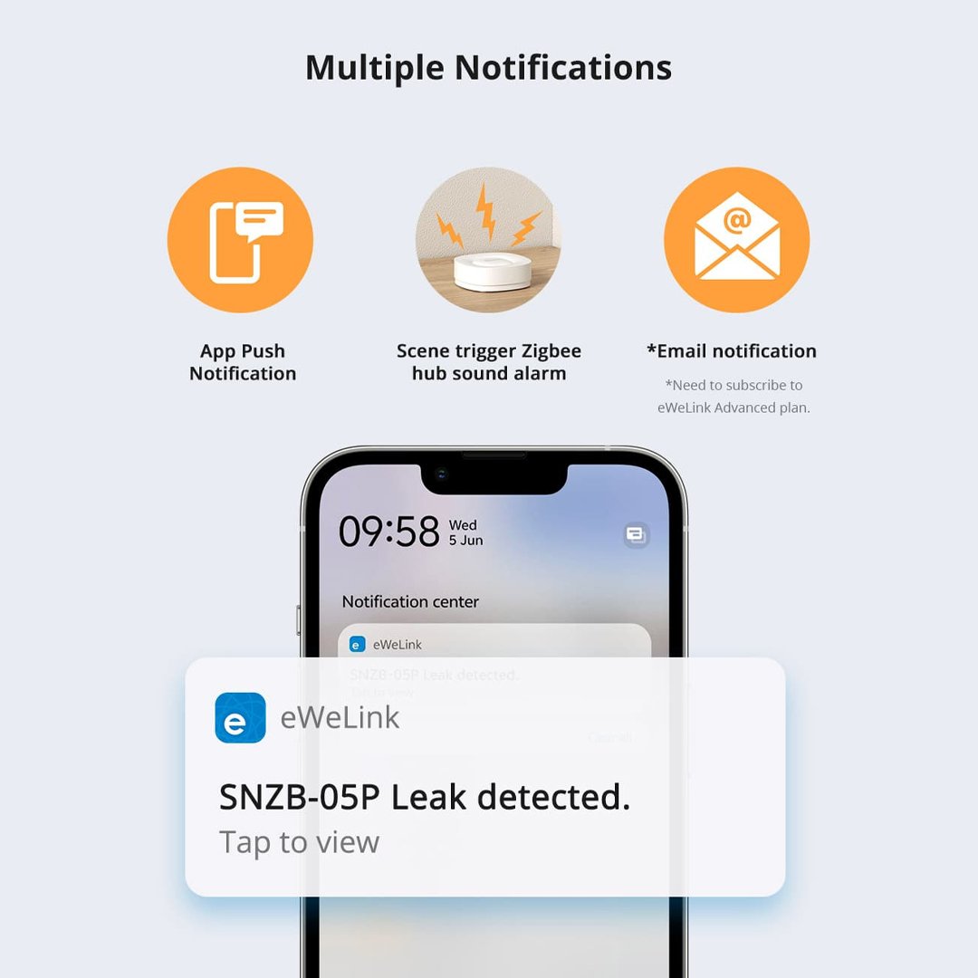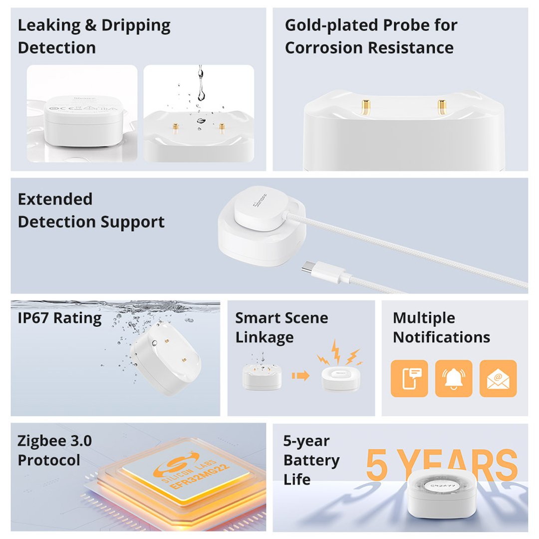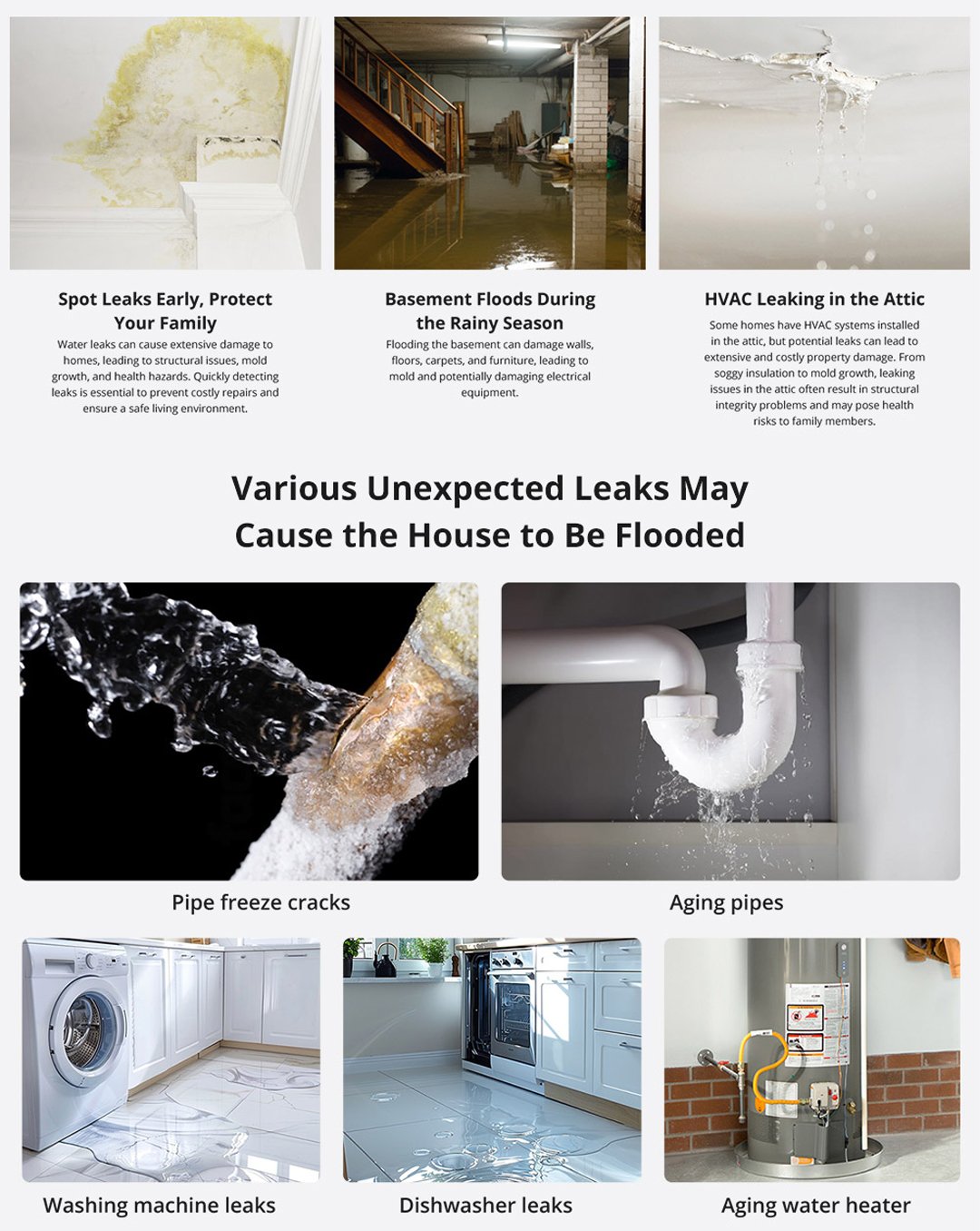 • Real-time Alerts & Multiple Notifications: Sends instant app push notifications when a leak is detected. Supports Zigbee local scenes to trigger sound alarms from the gateway even without Wi-Fi.