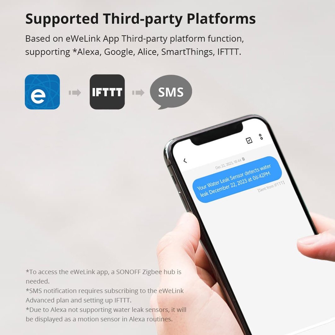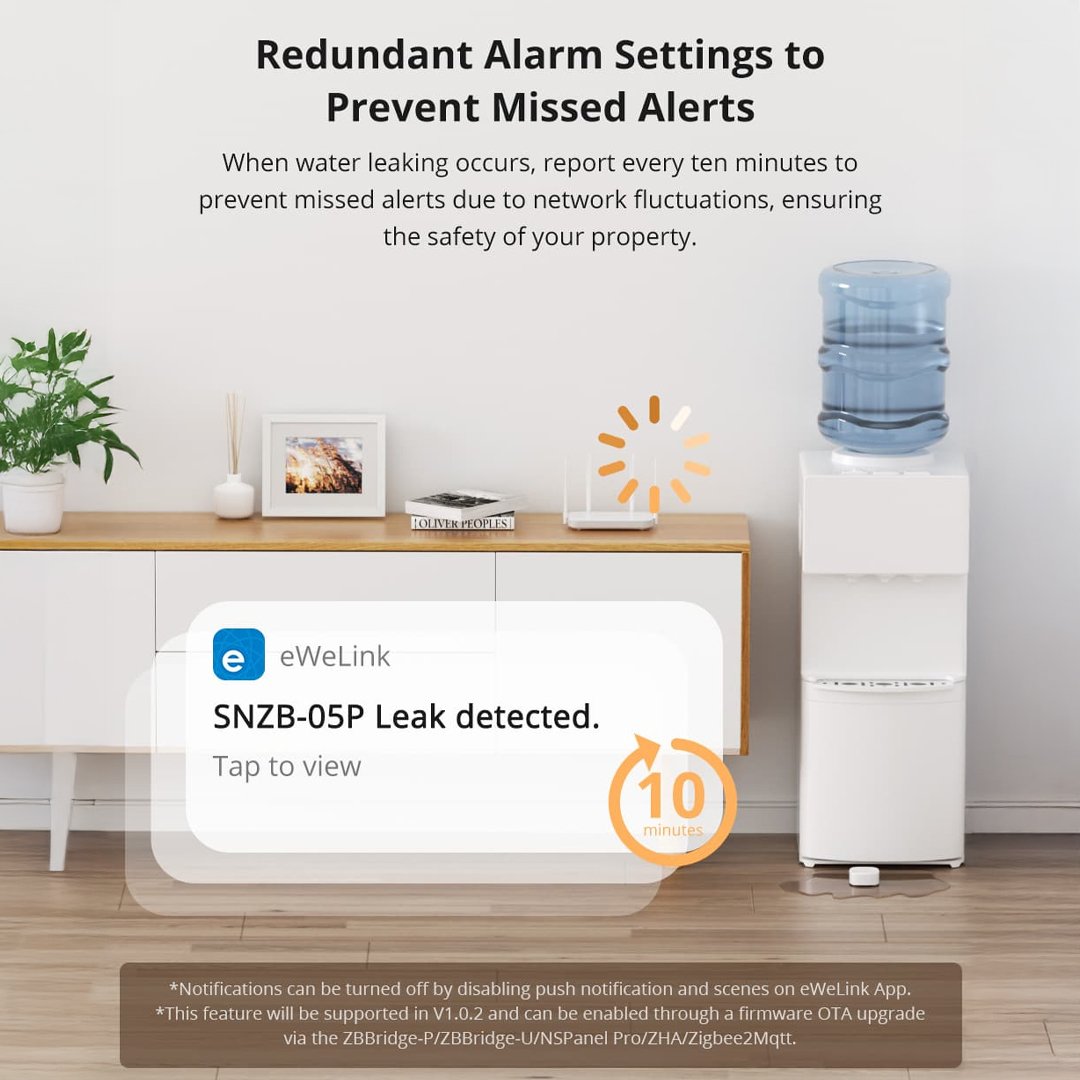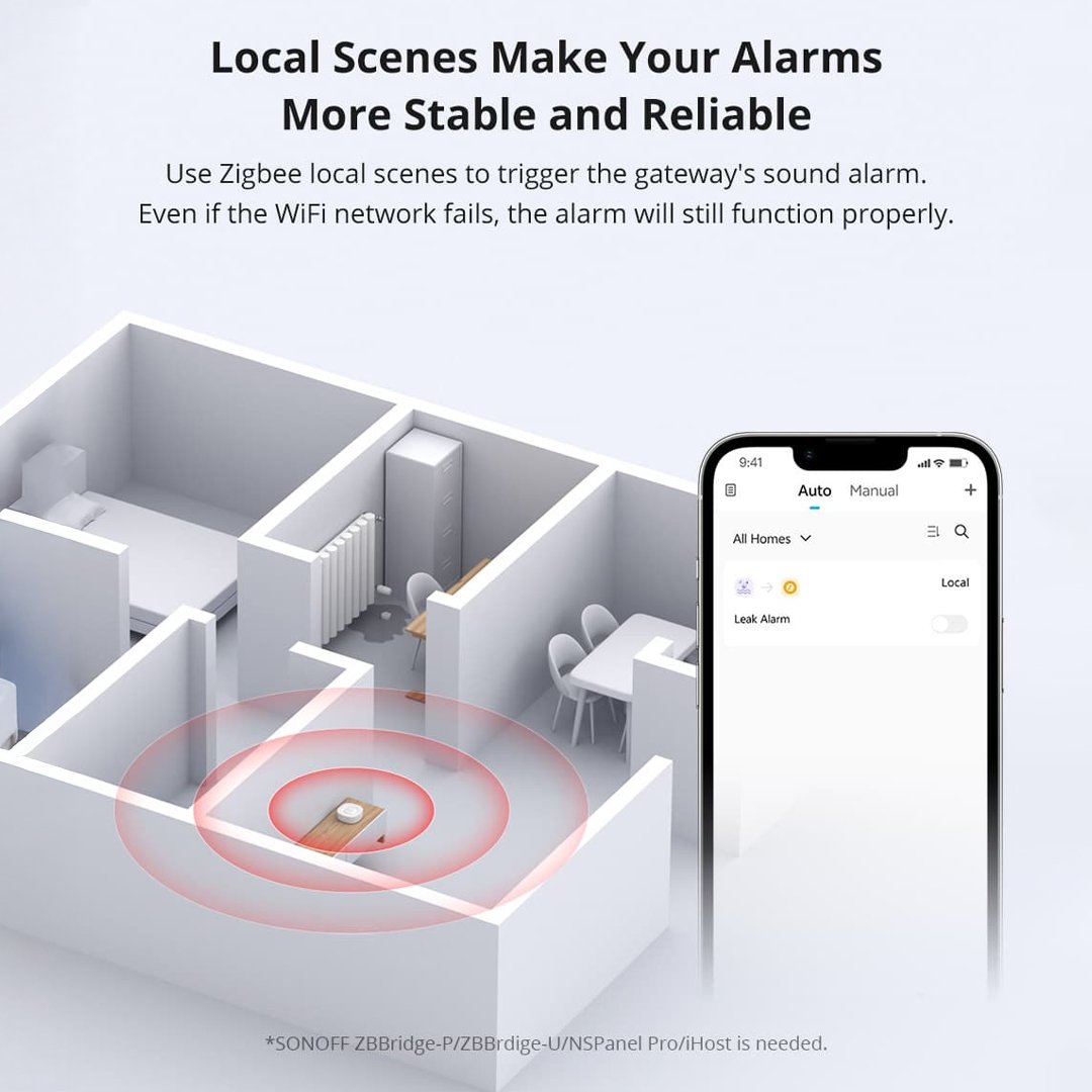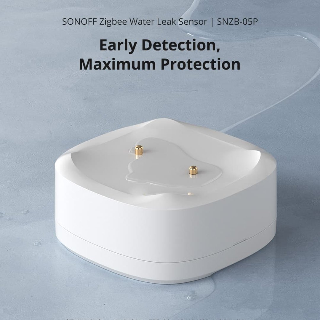 Besides sending alerts, the SNZB‑05P works with other Zigbee devices to create smart routines. For example, it can shut off a connected water supply or flash your lights if a leak occurs.