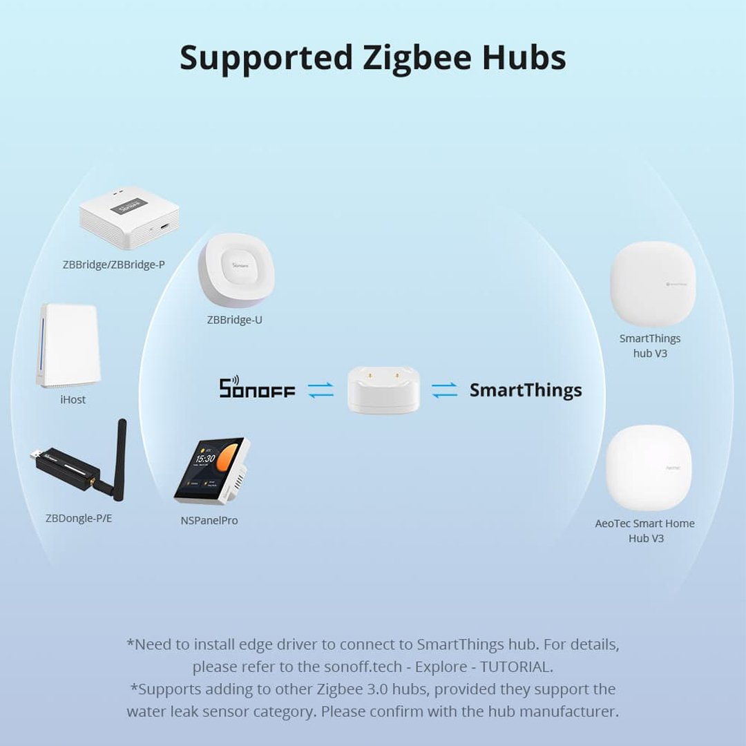• Zigbee 3.0 Compatible: Works with Zigbee 3.0 hubs such as SONOFF NSPanel Pro, SONOFF iHost, SONOFF ZB Bridge/ZB Bridge-P/ZB Bridge-U, SmartThings Hub V3, and more.