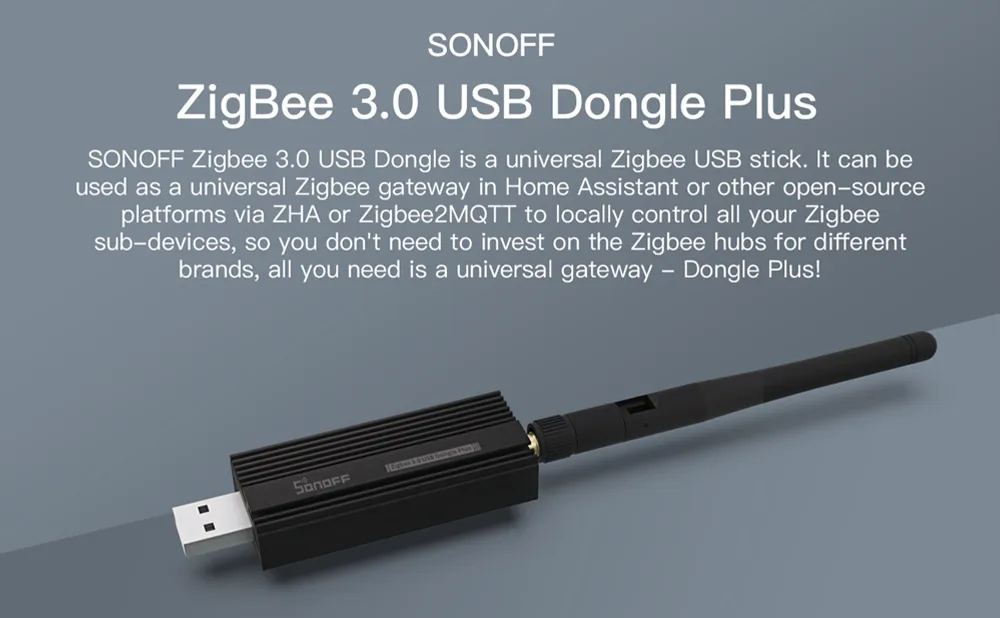 SONOFF Zigbee 3.0 USB Dongle Plus is a universal Zigbee USB stick. It can be used as a universal Zigbee gateway in Home Assistant or other open-source platforms via ZHA or Zigbee2MQTT to locally control all your Zigbee sub-devices, so you don’t need to invest in the Zigbee hubs for different brands, all you need is a universal gateway – Dongle Plus!
