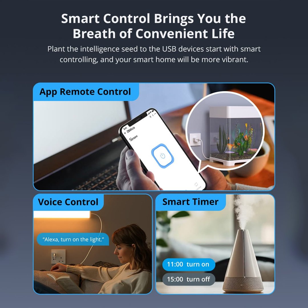 - Remote & Voice Control: Manage USB devices through the eWeLink app or voice assistants like Alexa and Google Home.