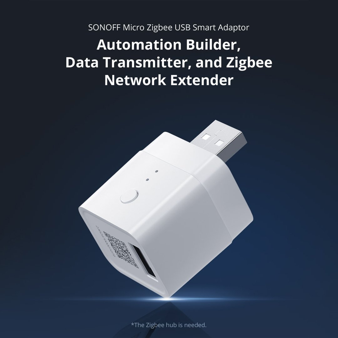 The SONOFF Micro Zigbee USB Smart Adapter is a compact and practical device that gives smart control to everyday USB-powered gadgets. Using Zigbee 3.0, it connects seamlessly to SONOFF Zigbee hubs and compatible gateways for fast and stable performance.