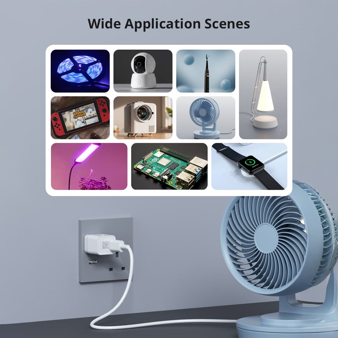 This adapter is perfect for managing small USB-powered electronics such as LED strips, desk fans, wireless chargers, or routers. By automating power cycles, it helps save energy and improves daily convenience.
