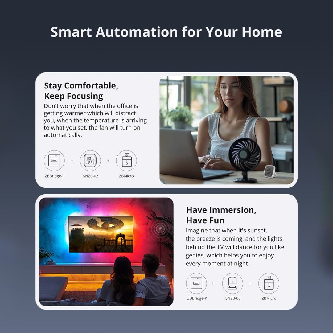- Smart Scenes Support: Works with SONOFF Zigbee devices and sensors for automated control.